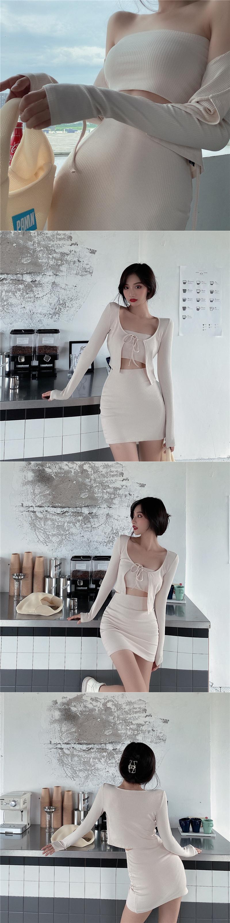 カーディガントップス ハイウェストウェストスリムスカート スプリングサマースタイル 春物 夏物 ブラックストロベリース2838093603