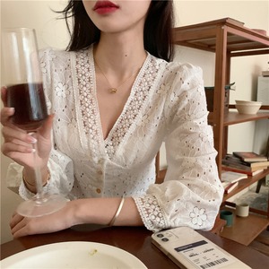 シフォンレースシャツ レディースルーズショートホワイトスプリングサマートップス ロング 春物 夏物 ブラックストロベリース28432787874
