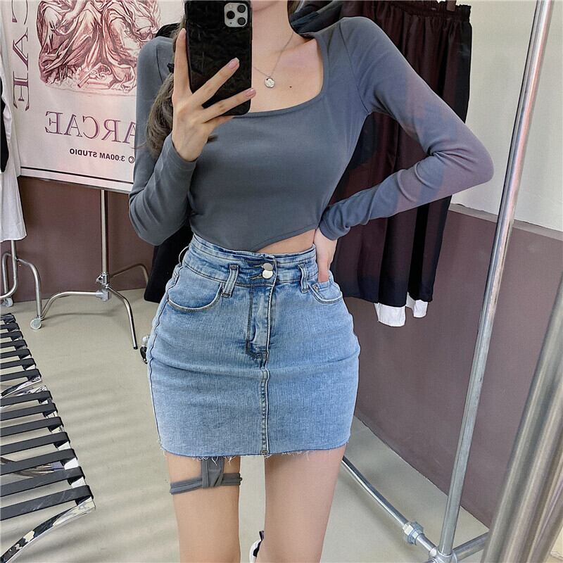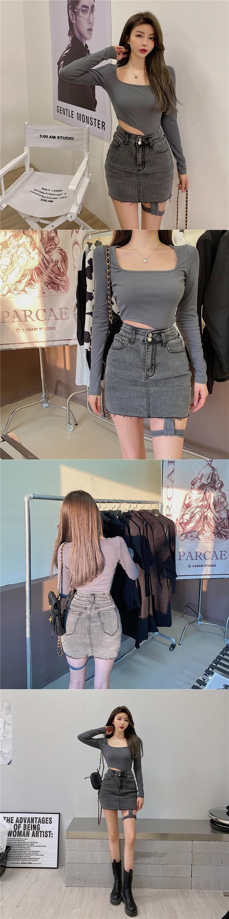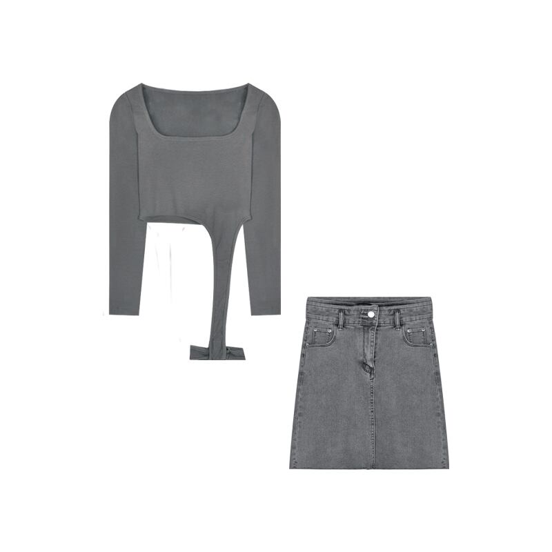 色:プレミアムグレートップ,ブルーデニムスカート,グレーデニムスカート