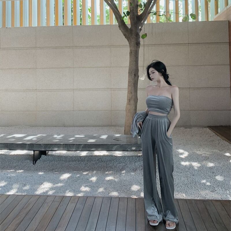 ベルベットパンツ レディースルーズスプリングオータムカジュアルハイウェストウェストスリム 春物 秋物 ブラックストロベリース62596668021
