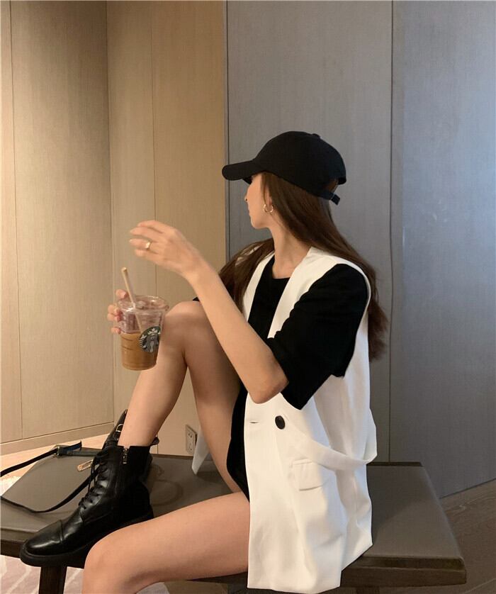 色:ブラックT,白いベスト