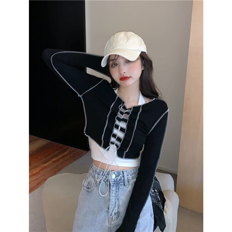 ニットTシャツ スプリングサマー薄手カーディガンショートクロップドブラックトップス ロング 春物 夏物 ブラックストロベリース61194942198