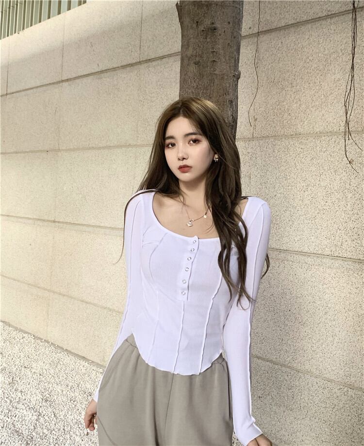 Tシャツ シャツ ホワイトスプリングオータムトップス ロング 春物 秋物 ブラックストロベリース99504303480