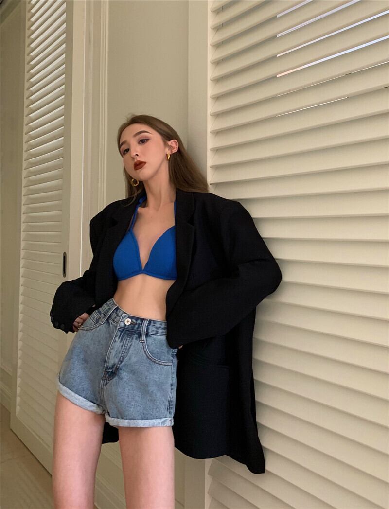 ジーンズ ハイウェストウェストスリムショーツ スプリングサマールーズスタイルスタンダードパンツ レトロ 春物 夏物 ブルマー ブラックストロベリース79620950196