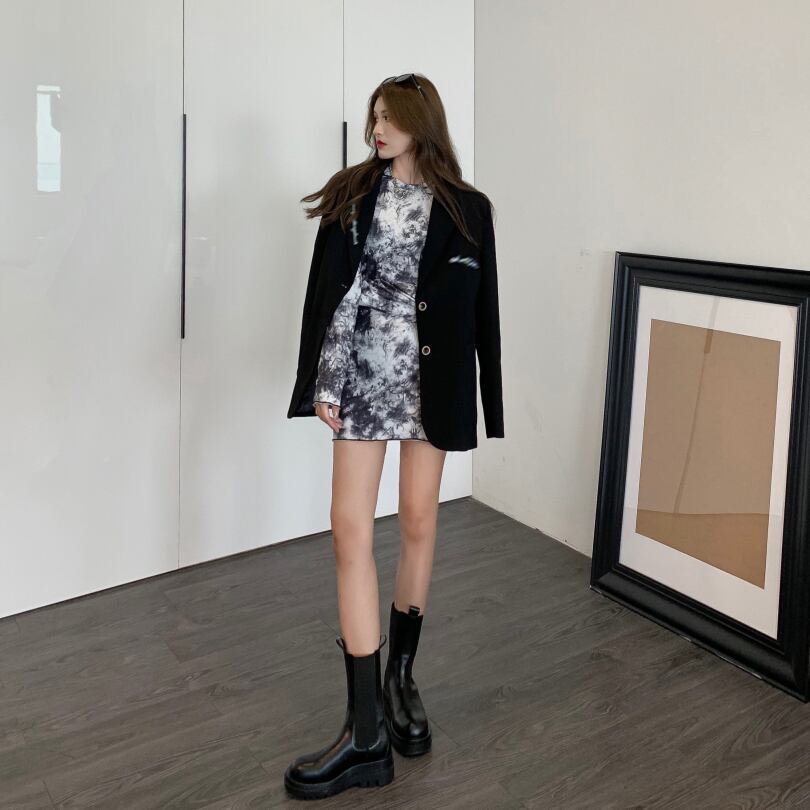 ジャケット ルーズスタイルロングカジュアルスプリングオータム ストリート 春物 秋物 ブラックストロベリース10644436766
