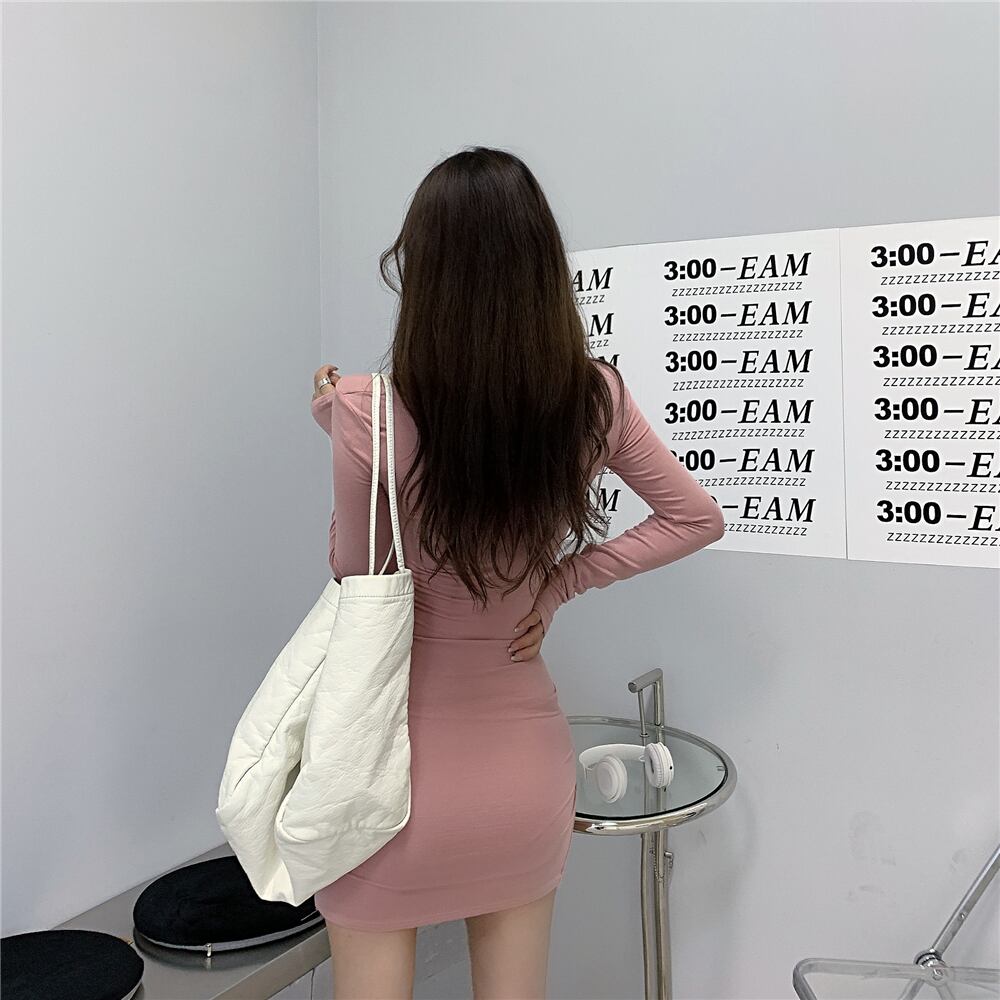 ドレス スリムショートスカート スプリング ロング ピンク 春物 スクウェア ブラックストロベリース1961181204