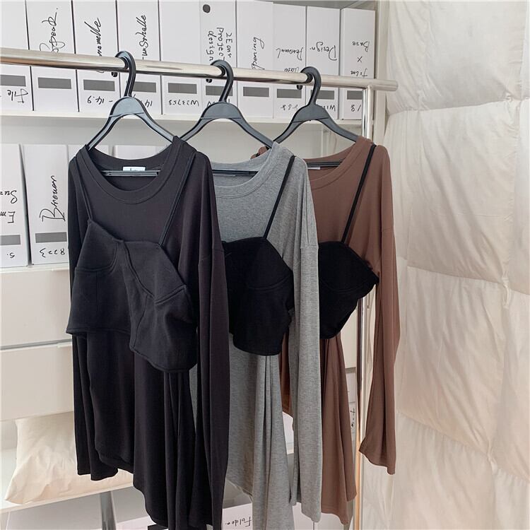 Tシャツ シャツ ルーズロングトップス レディーススプリンググレー 春物 ブラックストロベリース70251029609