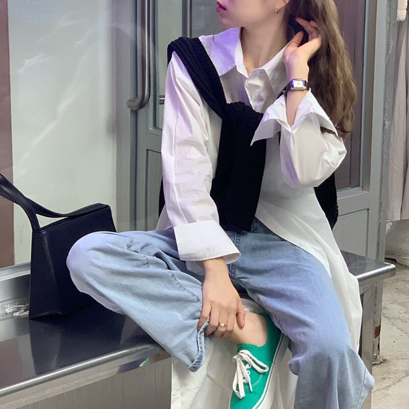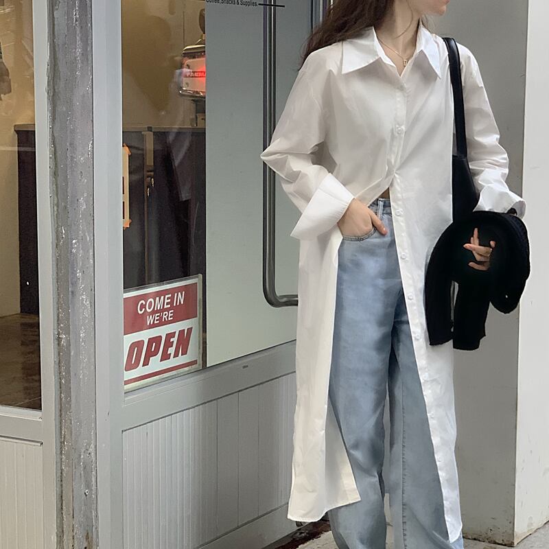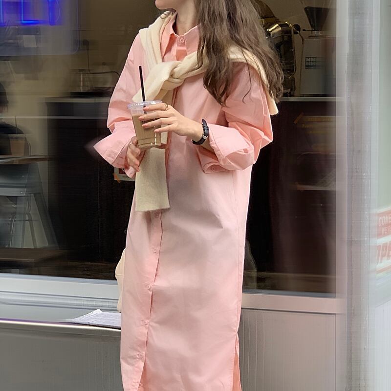 シャツ ドレス ルーズ薄手ホワイトスカート スプリング ロング 春物 ブラックストロベリース72840376117