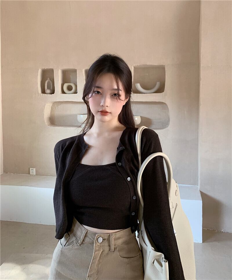 ニットセーター ショートスリムスタンダードスタイルカーディガンジャケット スプリングトップス レトロ 春物 ブラックストロベリース57969472737