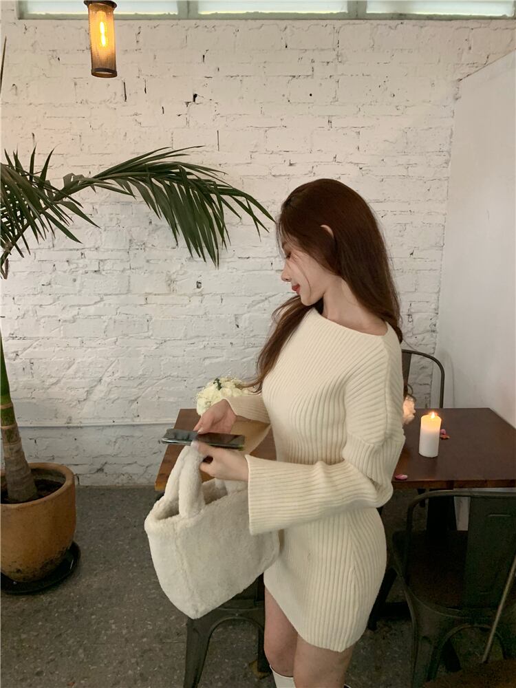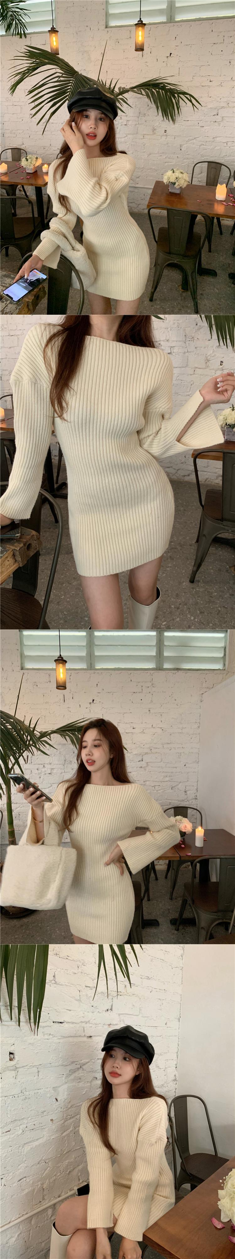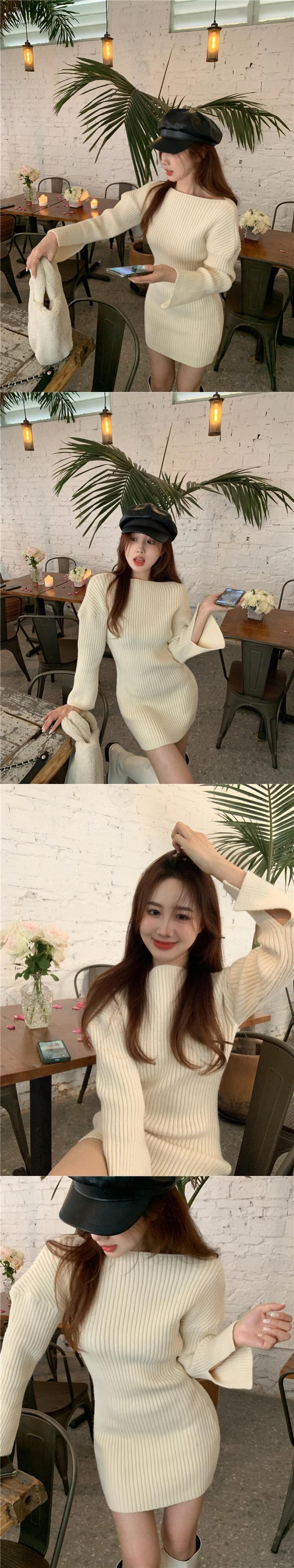 ニットドレス ウェストスリムショートスカート スプリング薄手 ロング 春物 ブラックストロベリース81180376
