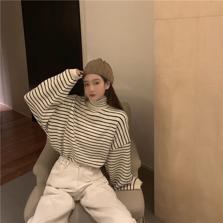 セーター ストライプルーズプルオーバー トップス スプリングシャツ 春物 ブラックストロベリース55374758278