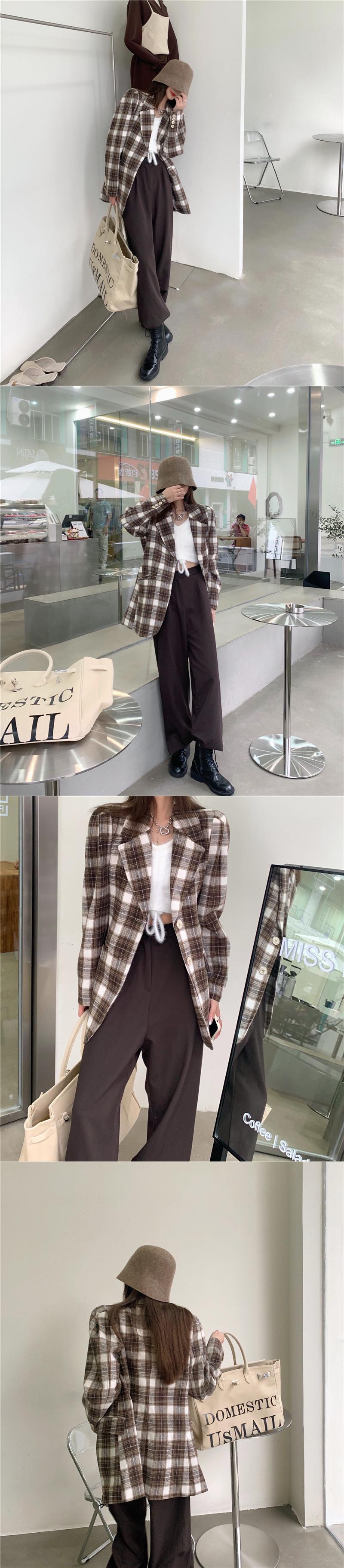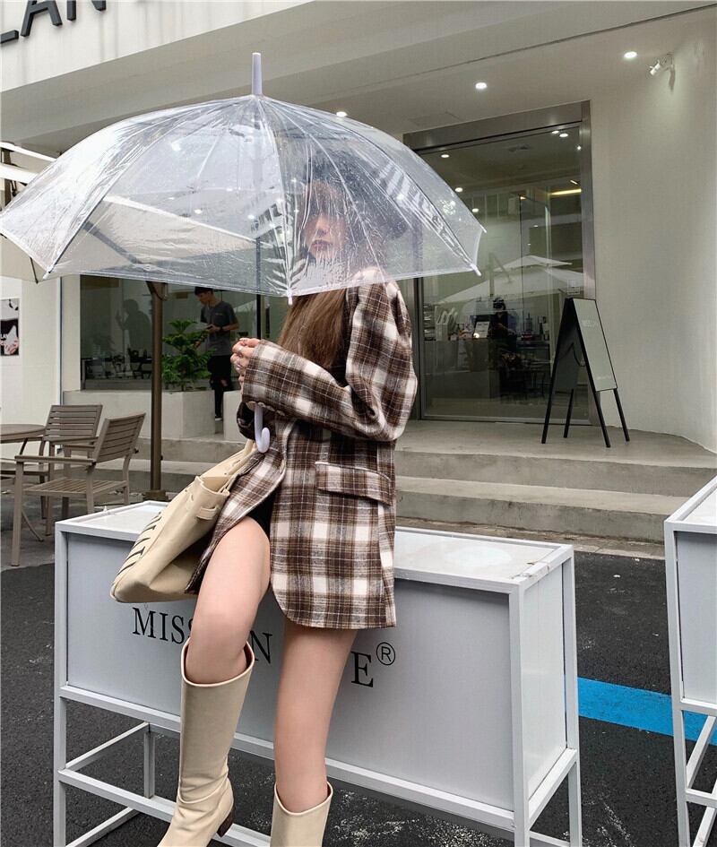 ジャケット スタンダード格子柄スタイルロングルーズスプリング レトロ 春物 ブラックストロベリース96775956493