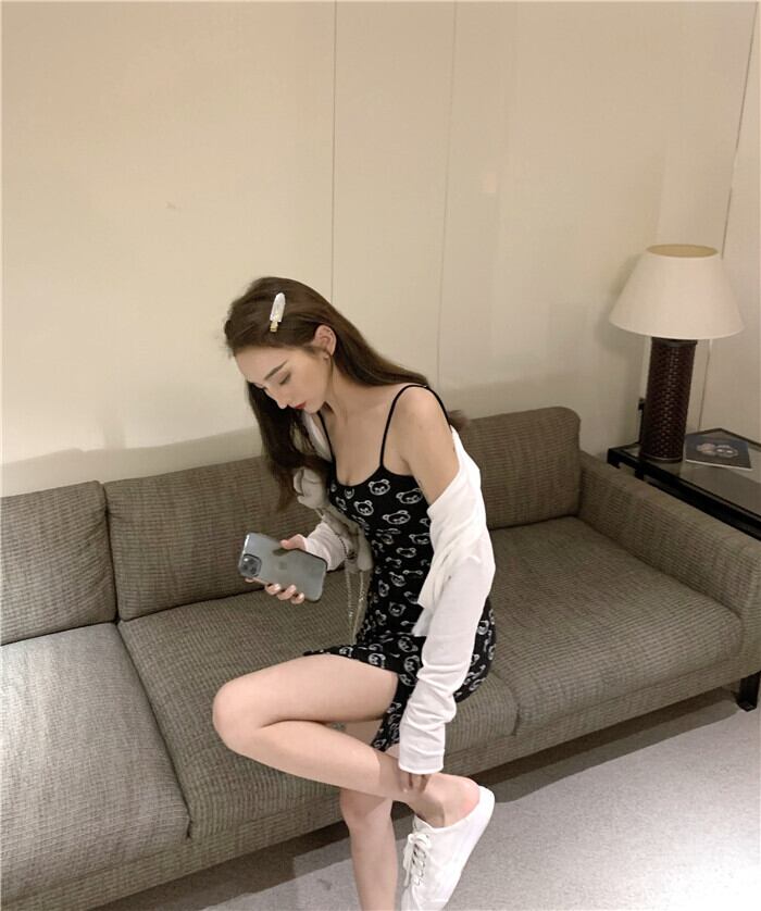 ドレス プリント柄ショートスカート スプリングブラック 春物 ブラックストロベリース73185367230