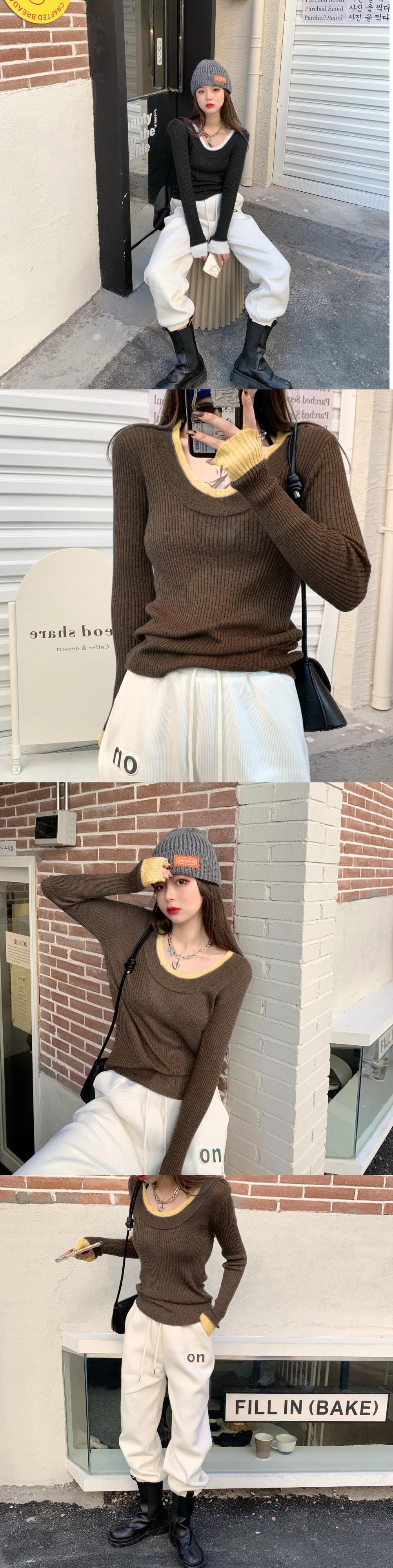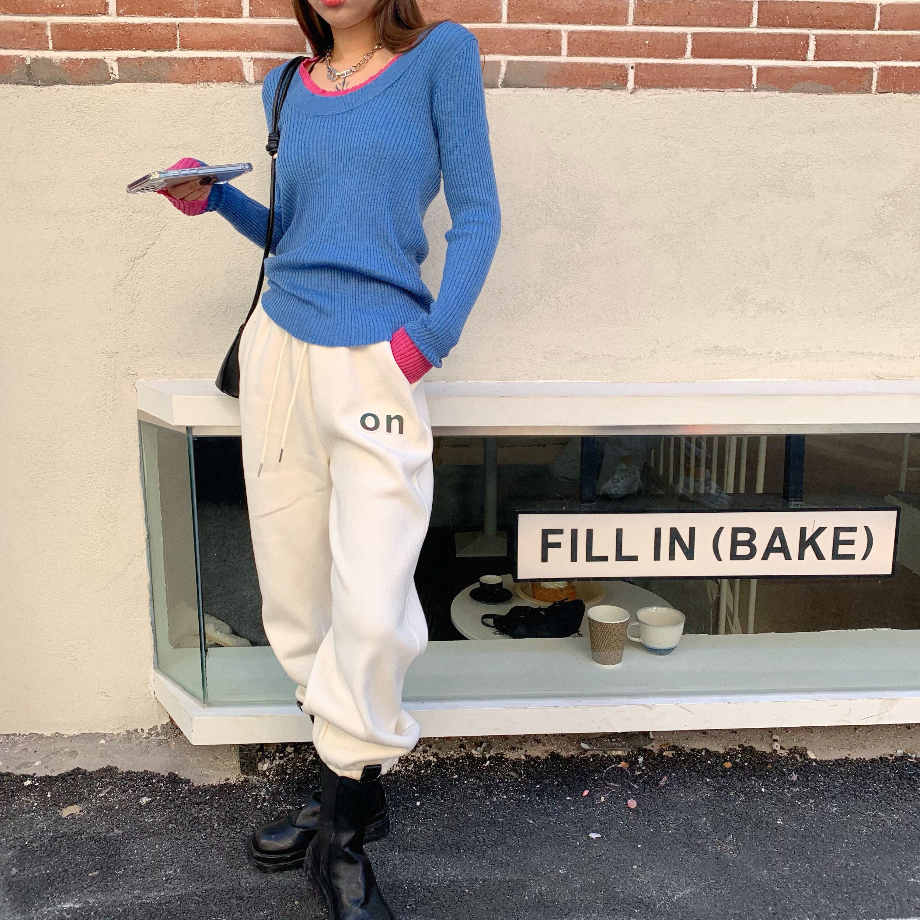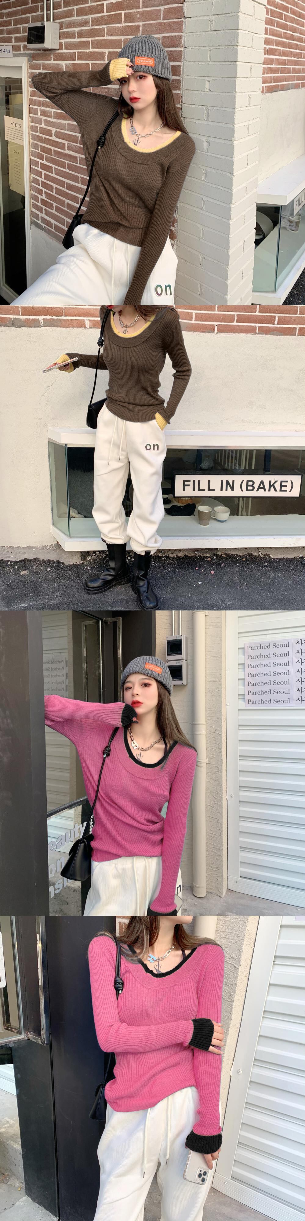 ニットセーター カラーシャツ スプリングスタイルトップス ピンク 春物 ステッチ ブラックストロベリース68063550445
