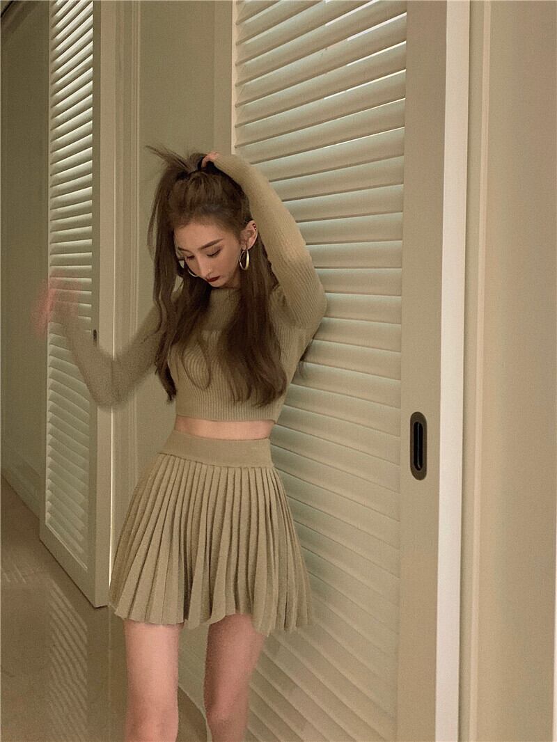ショートクロップドニットセーター ハイウェストウェストシャツ スプリングオータムトップス 春物 秋物 ブラックストロベリース77005269236