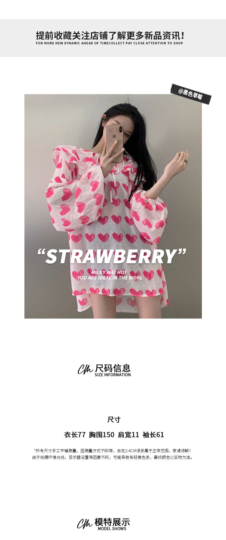 シフォンシャツ カラーラッフルスプリングルーズ ロング 春物 ブラックストロベリース13643117315