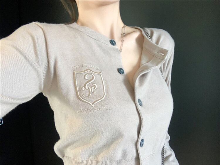 ニットセーター 刺繍ショートスリムカーディガンジャケット スプリングオータムスタンダード レトロ 春物 秋物 ブラックストロベリース67921882272
