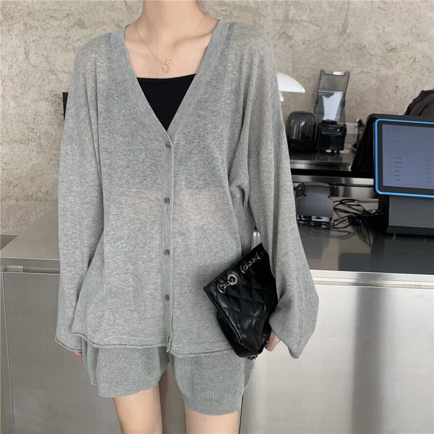 ニットセーター レディースルーズグレーVネックトップス スプリングスタンダードスタイルカーディガンジャケット レトロ 春物 ブラックストロベリース3780008991