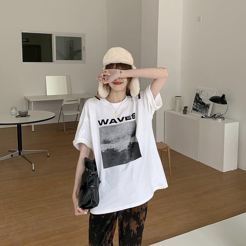 Tシャツ サマープリントスタイルルーズトップス コットン かわいい 夏物 ブラックストロベリース38495682434