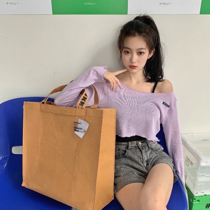 Tシャツ ショートスリムブラウス スプリングオータムスタイル ロング 春物 秋物 ブラックストロベリース48359321014