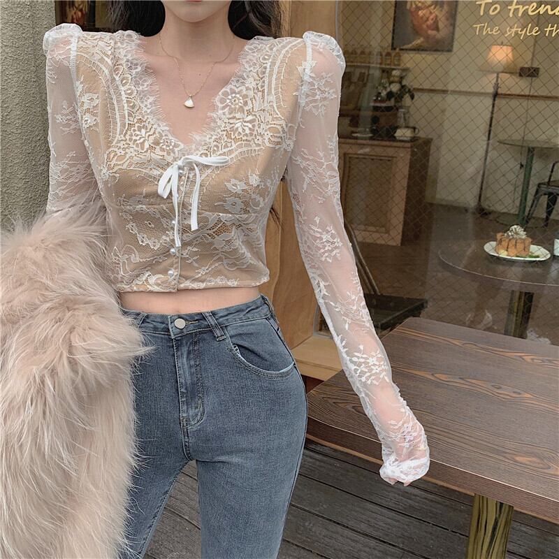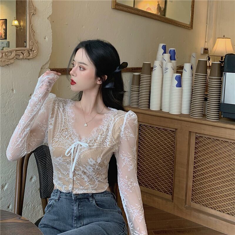 レースシフォンシャツ レディーススプリングリボンショートスタイルホワイトトップス ロング 春物 ブラックストロベリース20261637451