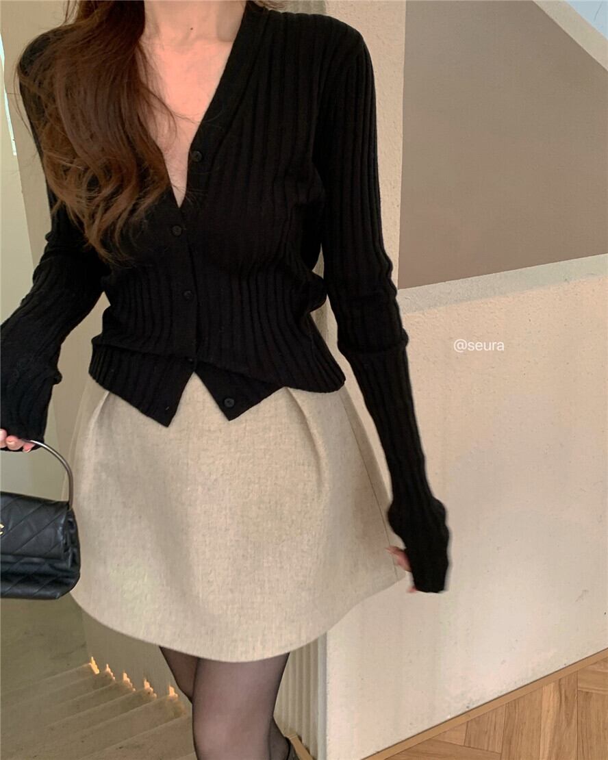 色:黒いセーター,アプリコットスカート