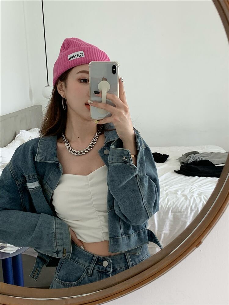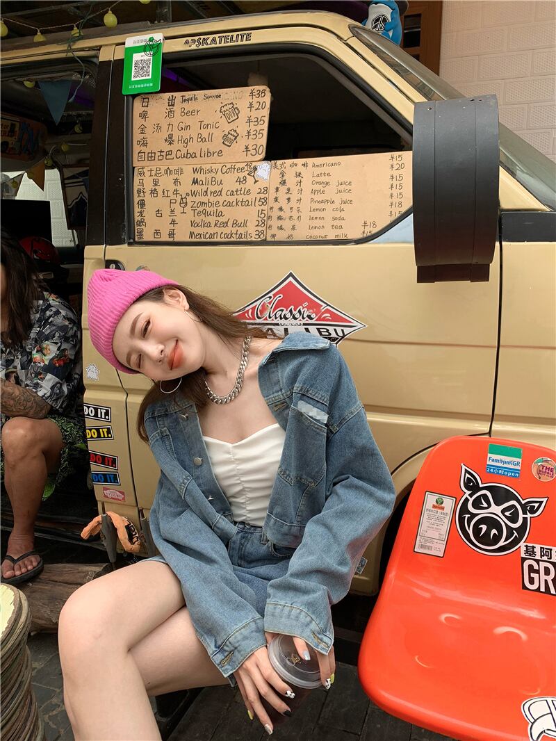ショートジャケット スプリングサマー薄手スタンダードスタイルルーズトップス ロング レトロ 春物 夏物 ブラックストロベリース18853644037