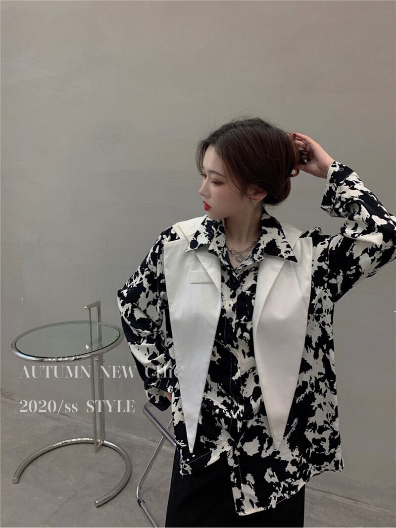 シャツ ルーズスタイルスプリングトップス ロング 春物 ブラックストロベリース81370473228