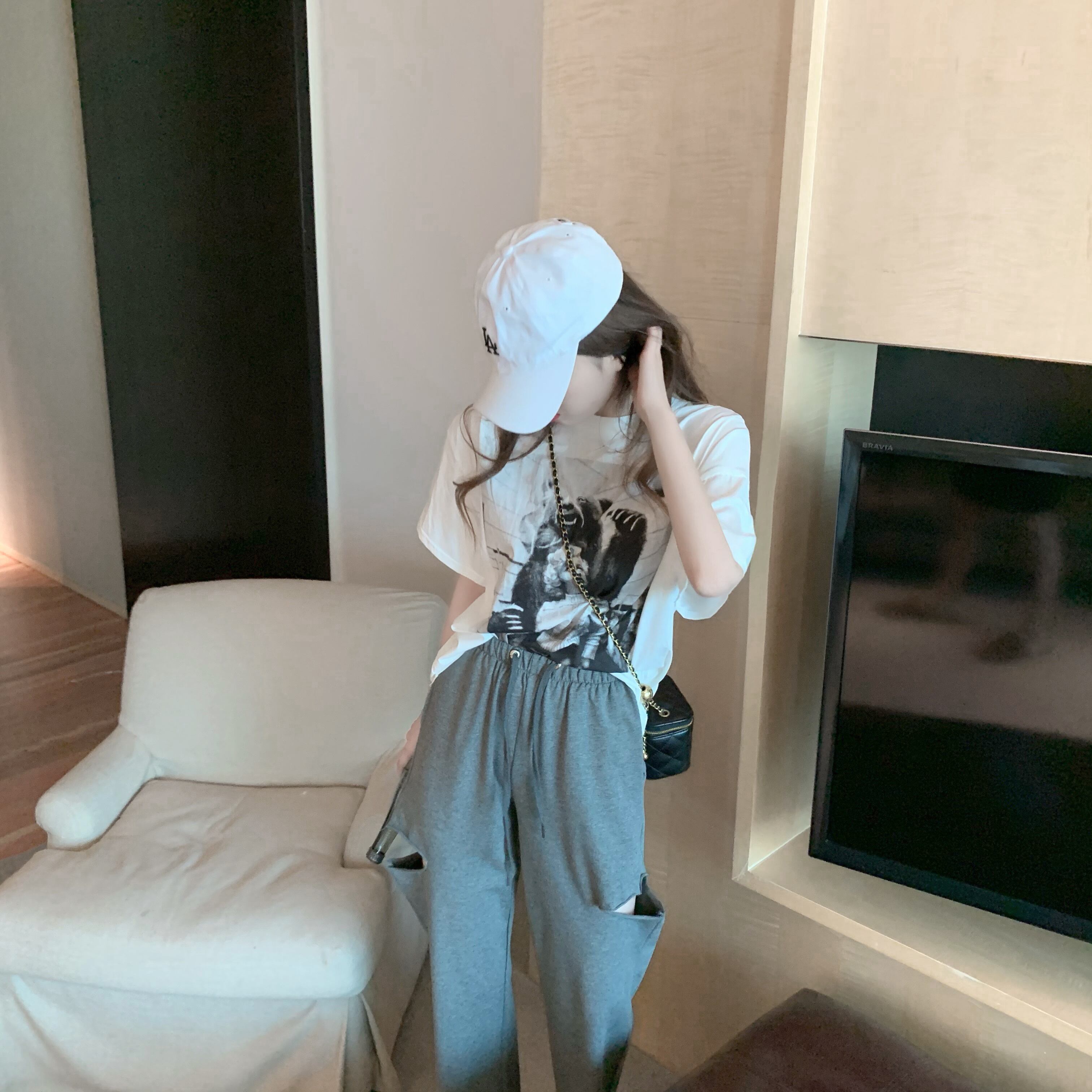 Tシャツ シャツ プリントルーズトップス スプリングホワイト 春物 ブラックストロベリース37963588555