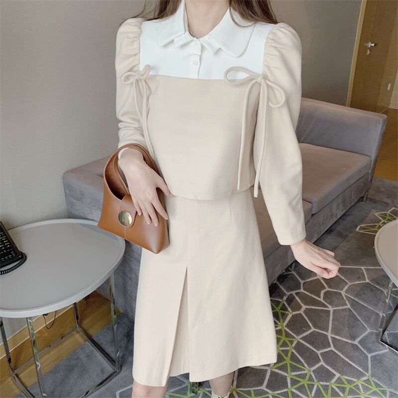 色:ブルートップ,青いスカート,アプリコットトップ,アプリコットスカート