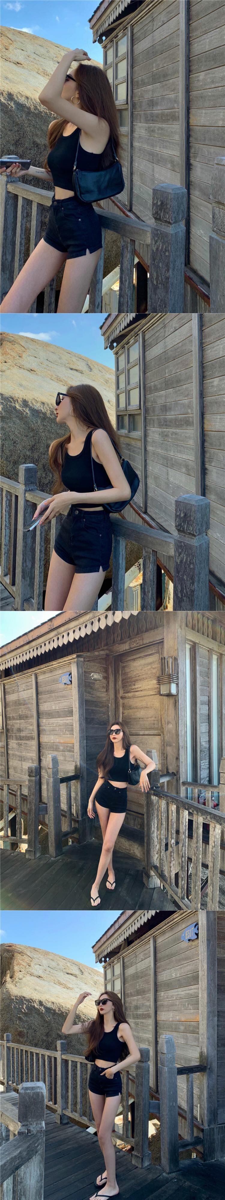 ニットサマーショートブラックトップス 夏物 ヨーロピアン ブラックストロベリース88319587596