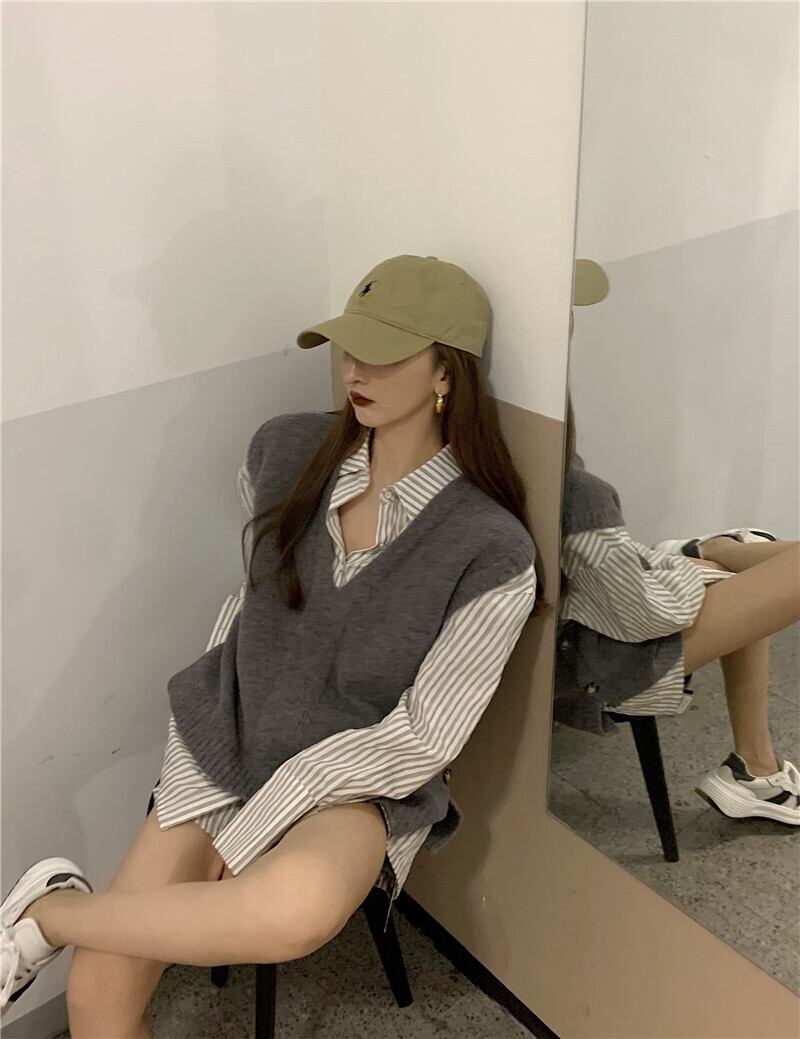 ルーズストライプシャツ スプリング ロング 春物 ブラックストロベリース79000495394