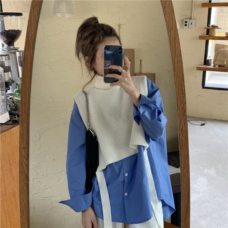 色:青いシャツ,白のシャツ,黄色のベスト,白いベスト