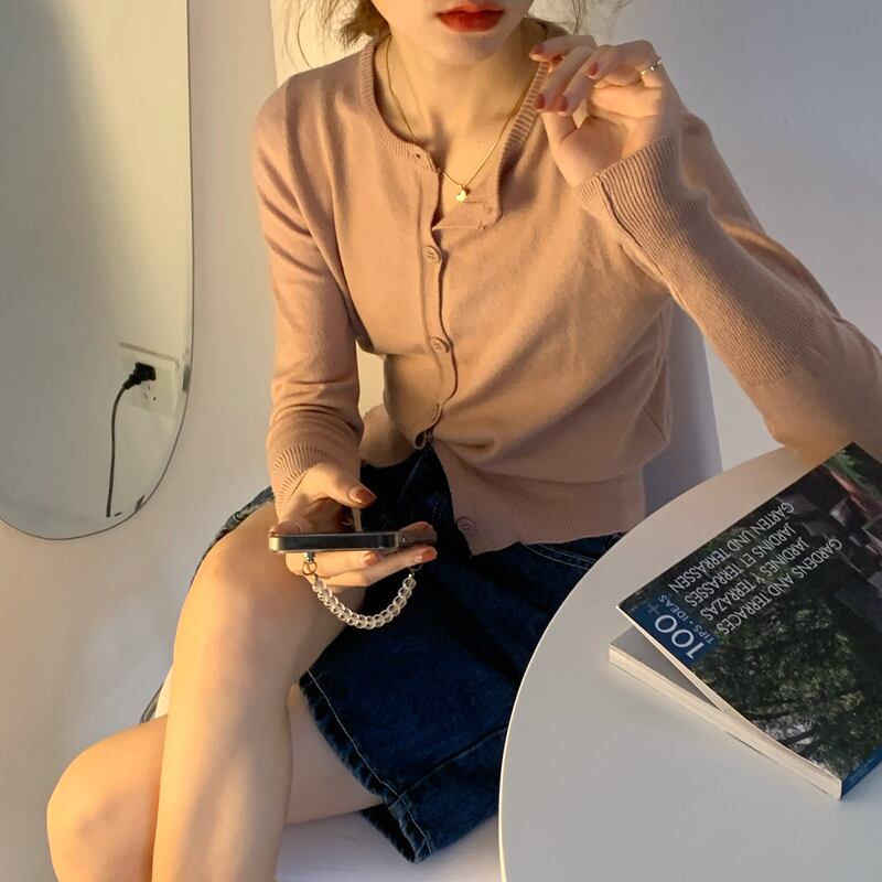 ニットセーター ショートトップス スプリングスタンダードスタイルカーディガンジャケット レトロ 春物 ブラックストロベリース31671706359