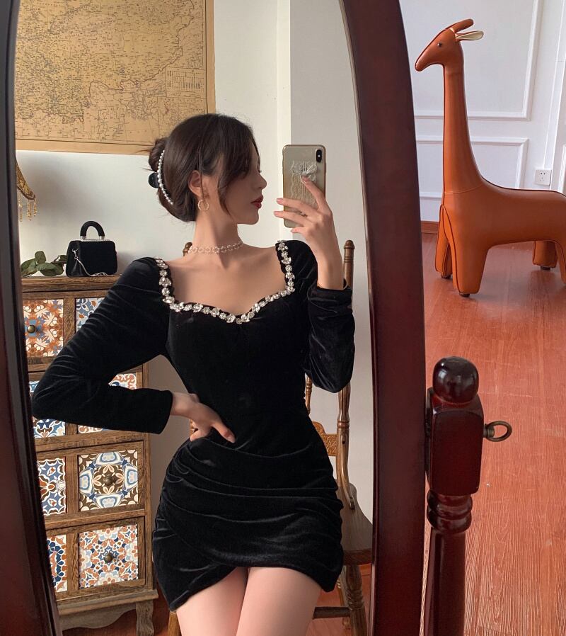 ドレス ウェストロングショートスプリング 長袖 春物 スカート ブラックストロベリース69232108056