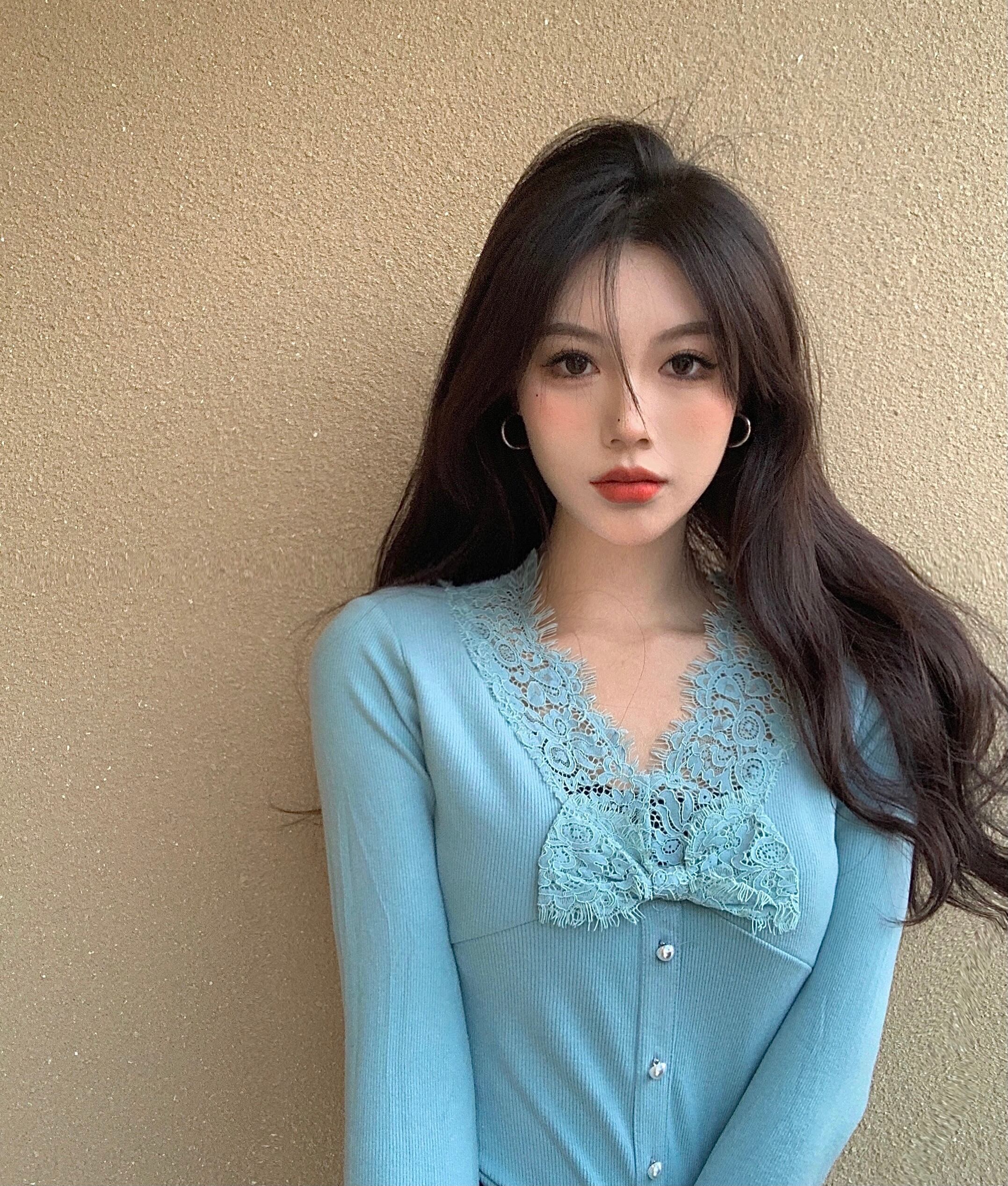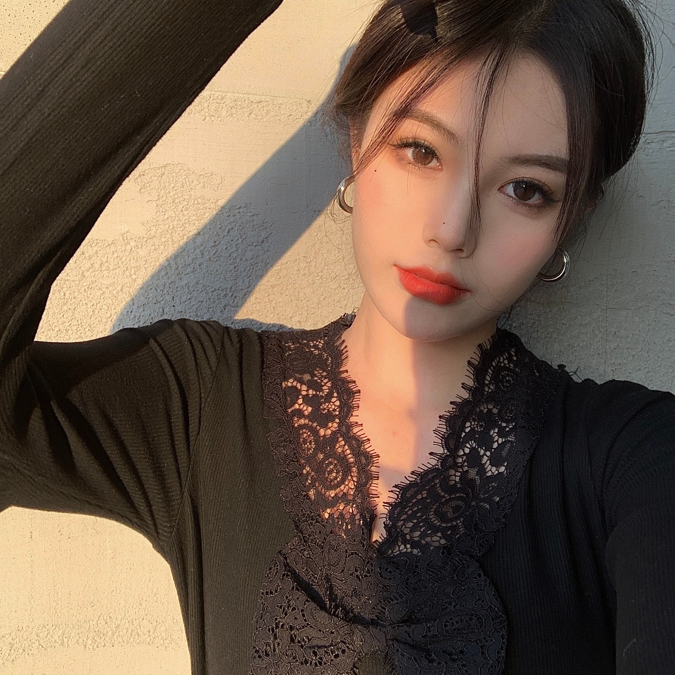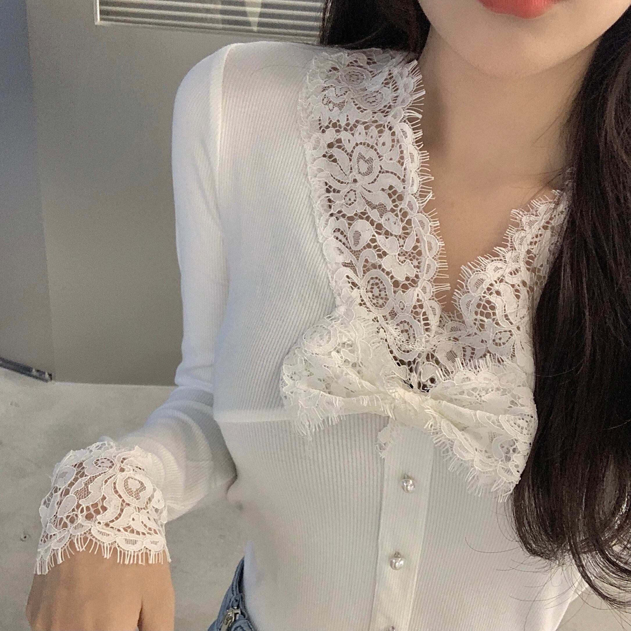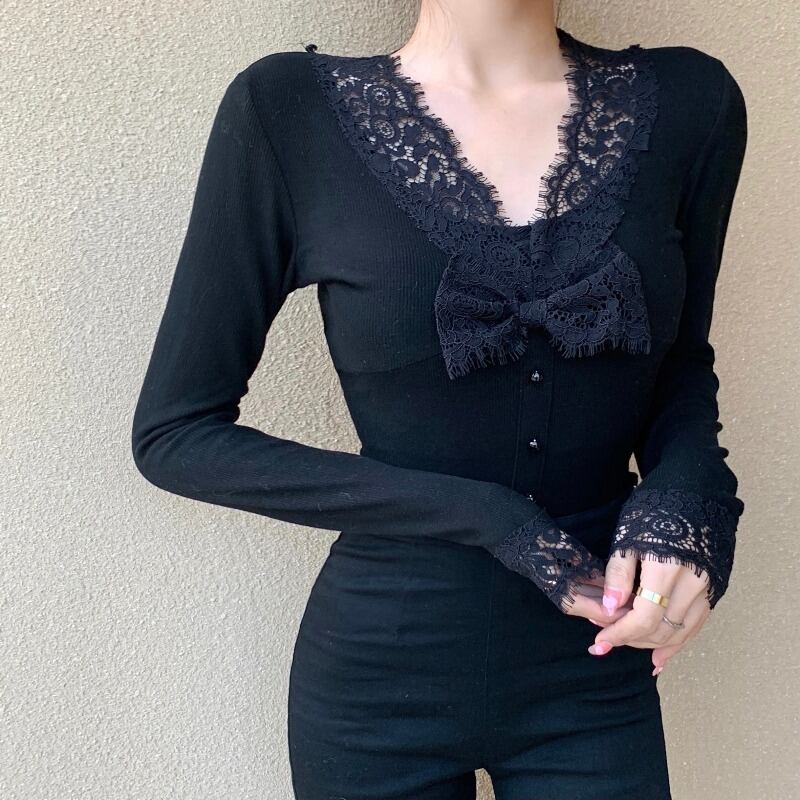Tシャツ レースニットスプリングトップス ロング 春物 ブラックストロベリース52212085359