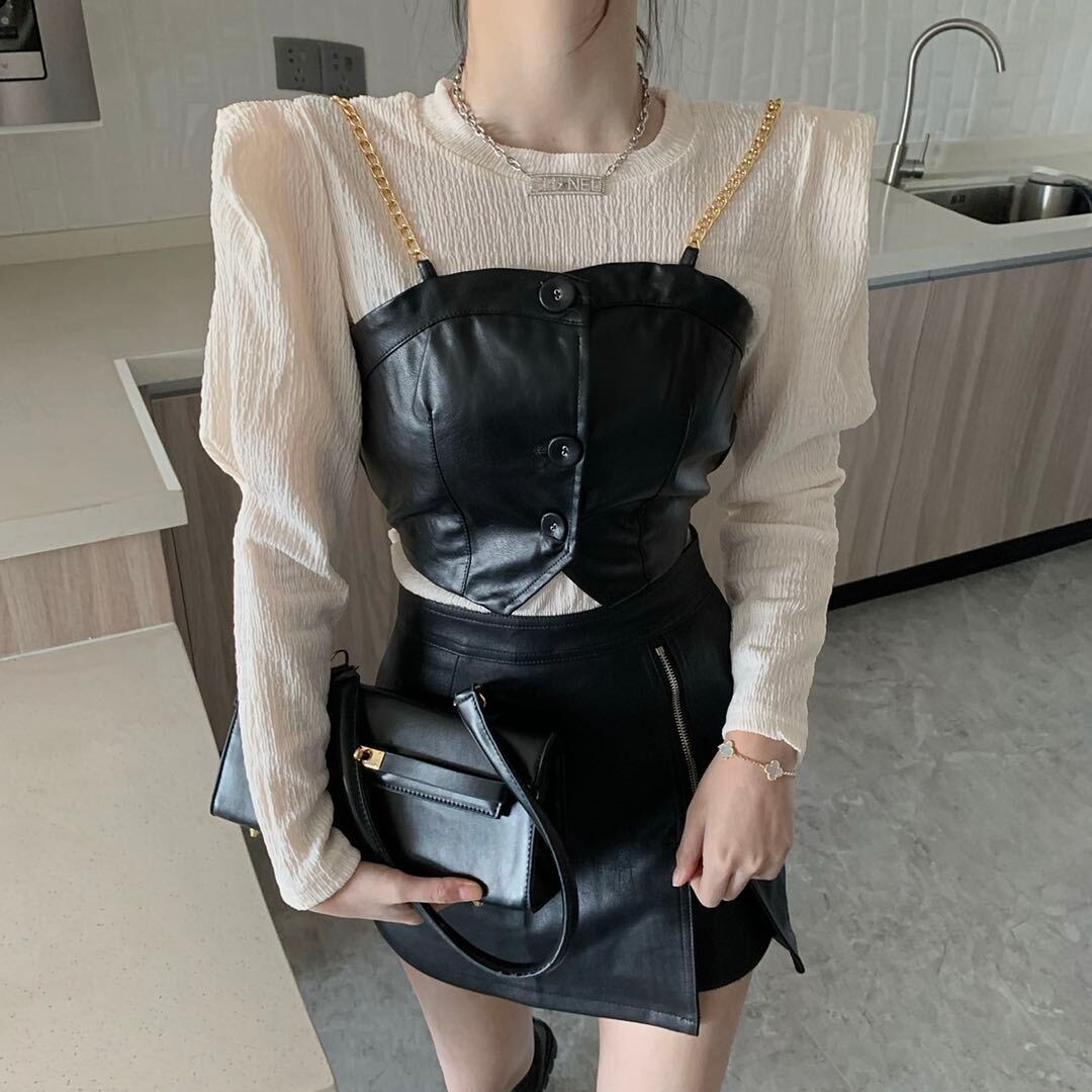 ニットセーター ショートカラーシャツ スプリングトップス 春物 ブラックストロベリース91111547640