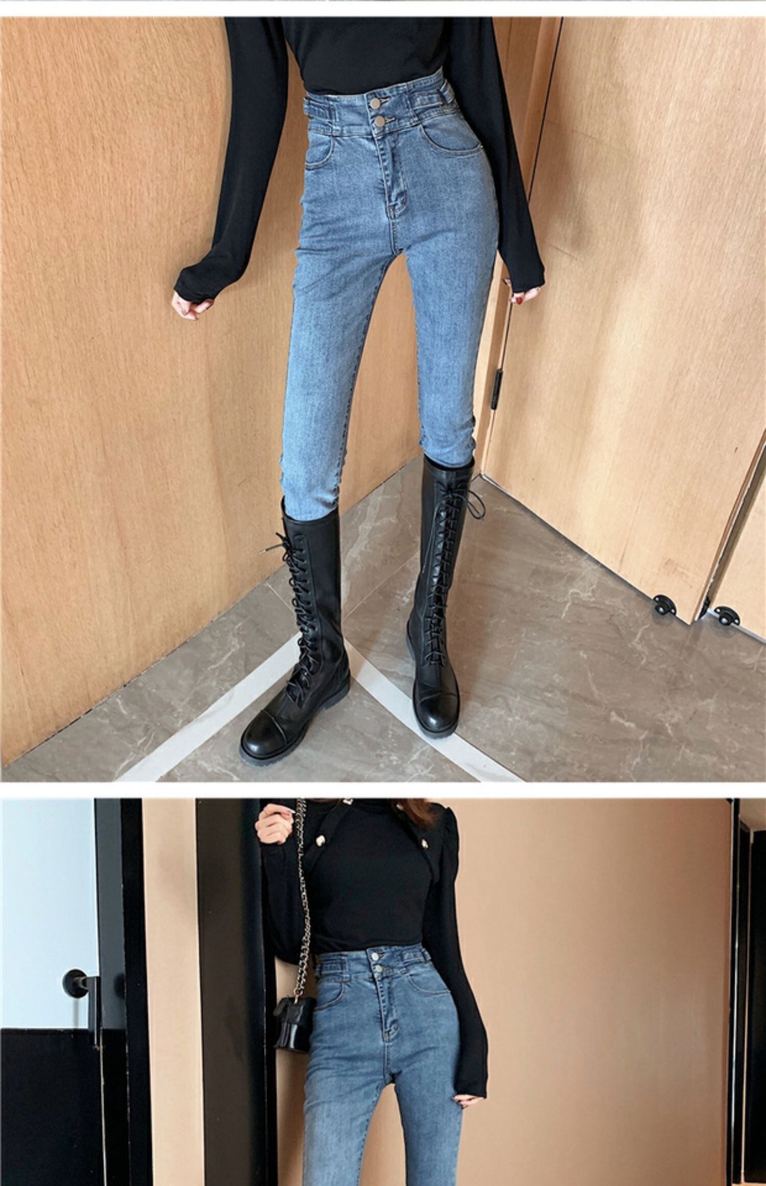 スタンダードジーンズ ハイウェストカジュアルブラックパンツ スプリングオータム レッド レトロ 春物 秋物 ブラックストロベリース93535703918