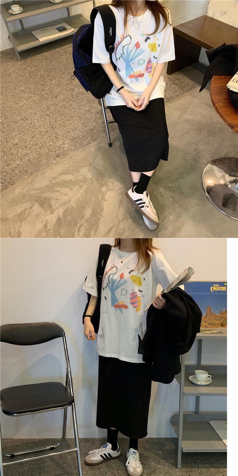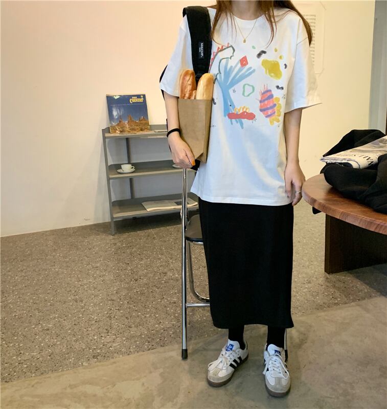 Tシャツ シャツ プリントルーズホワイトスプリングスタイルトップス 春物 ブラックストロベリース8160627486