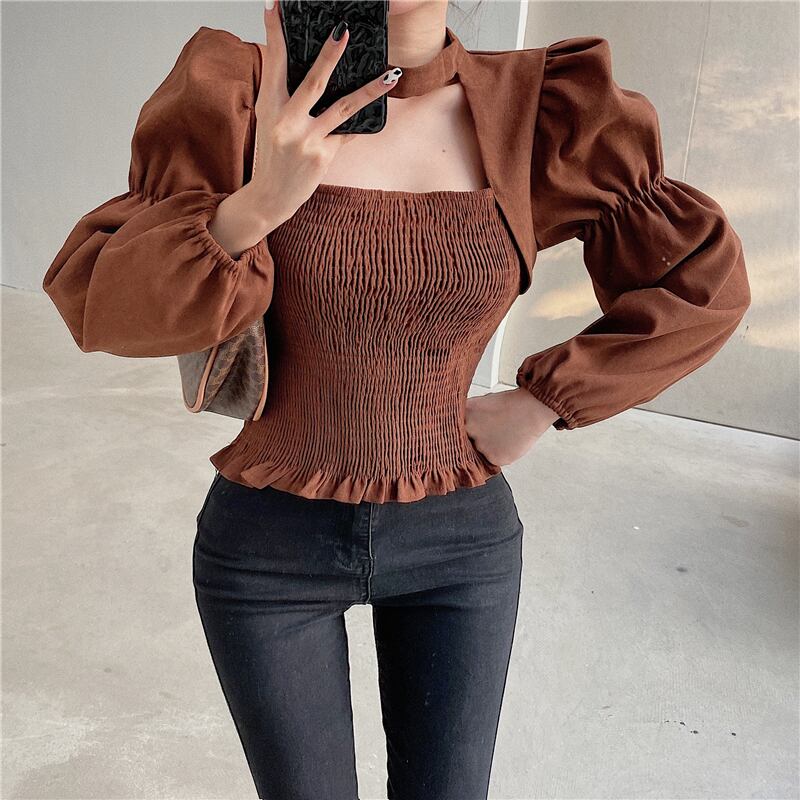 シャツ カラーショートレディーススプリングスタイルスリーブトップス ロング 春物 ブラックストロベリース24819008082