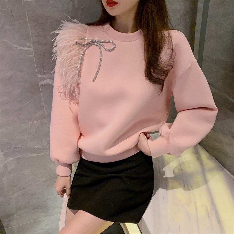 セーター リボンショートルーズスタイルジャケット スプリングラウンドネックトップス ピンク 大人ガーリー スウィート キュート カジュアル 春物 Oネック ブラックストロベリース1036251466