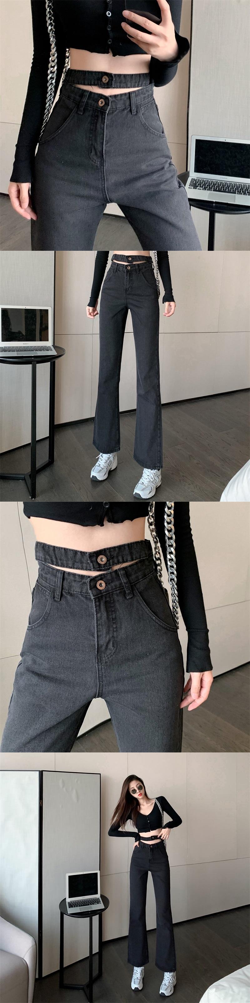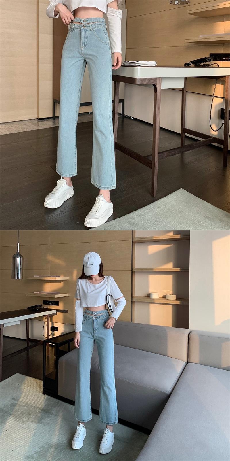 ジーンズ ハイウェストウェストルーズワイドレッグパンツ レディーススプリングブラック薄手 春物 ワイドパンツ ブラックストロベリース75424515612