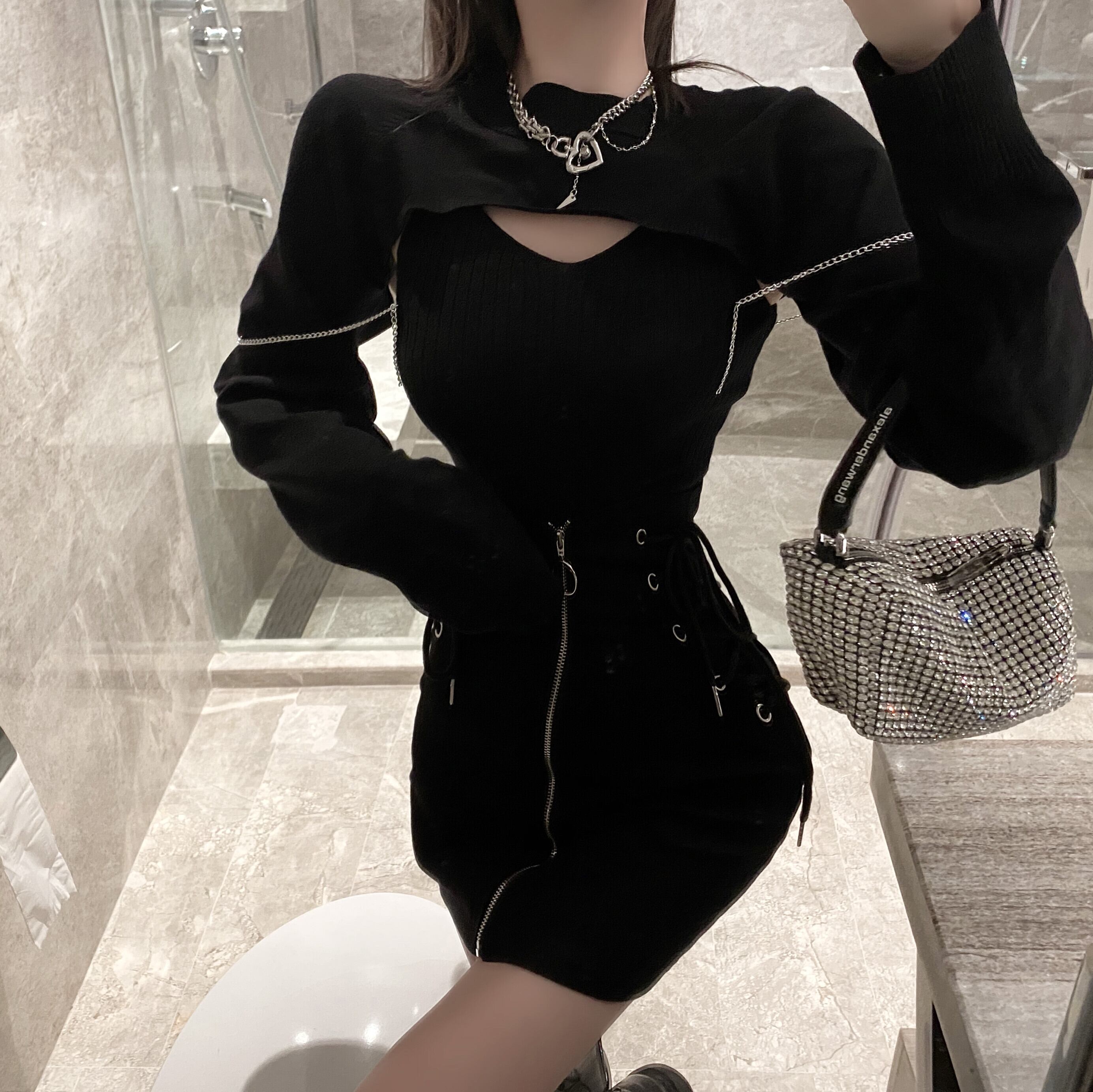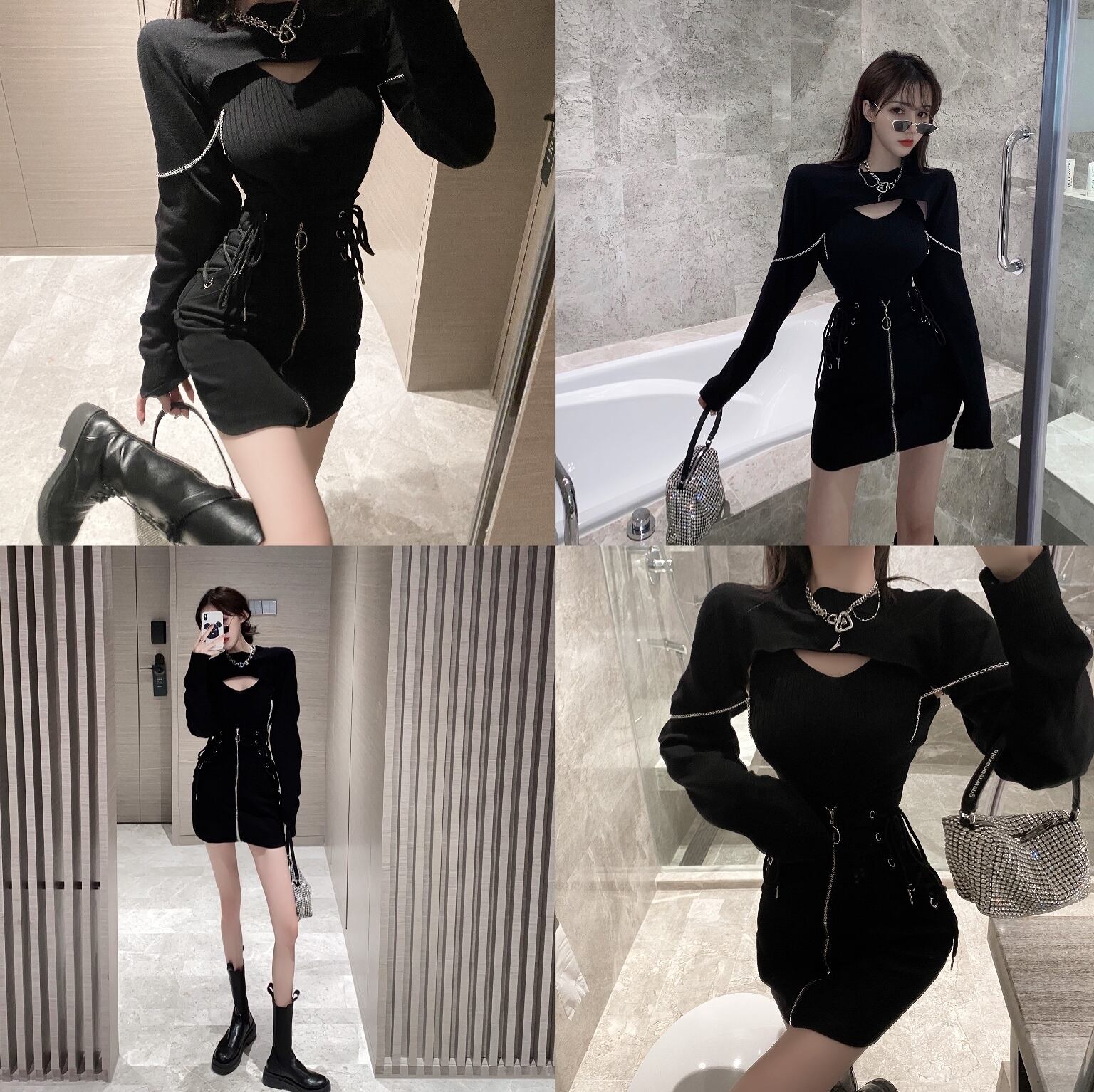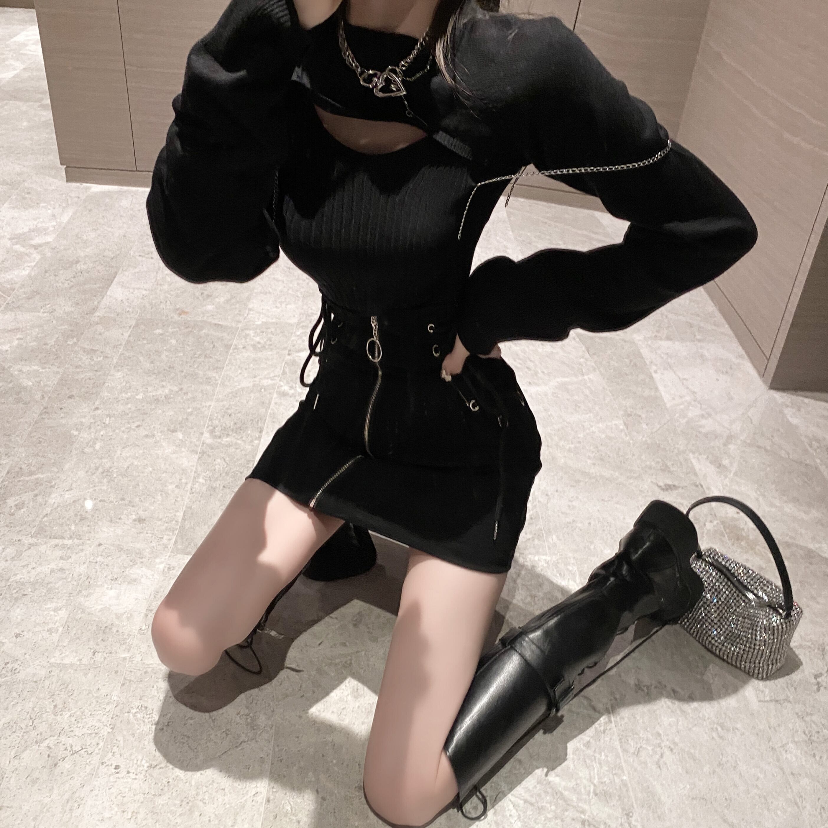 ニットセーター スプリングショートスリム 春物 ブラックストロベリース63709940554