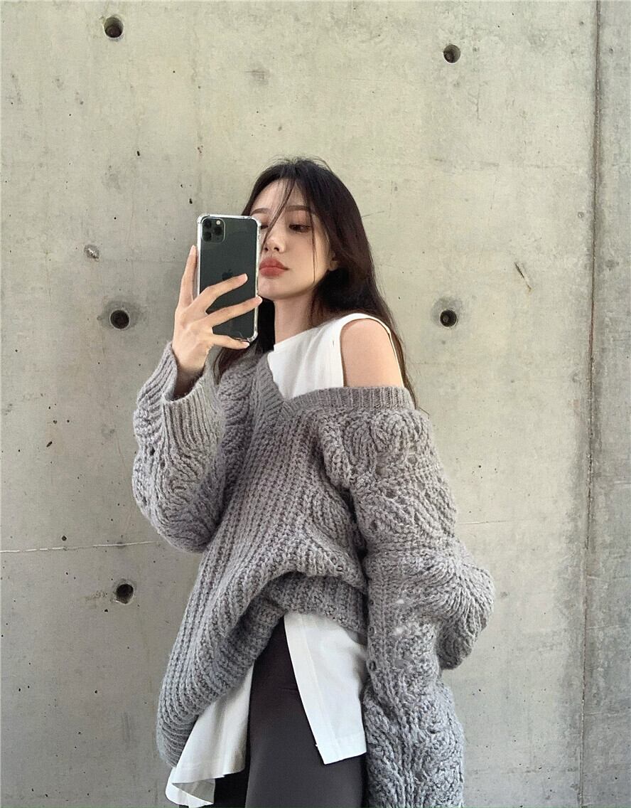 セーター レディースオータムウィンタールーズグレースタンダードニットトップス レトロ 秋物 冬物 ブラックストロベリース24029757358