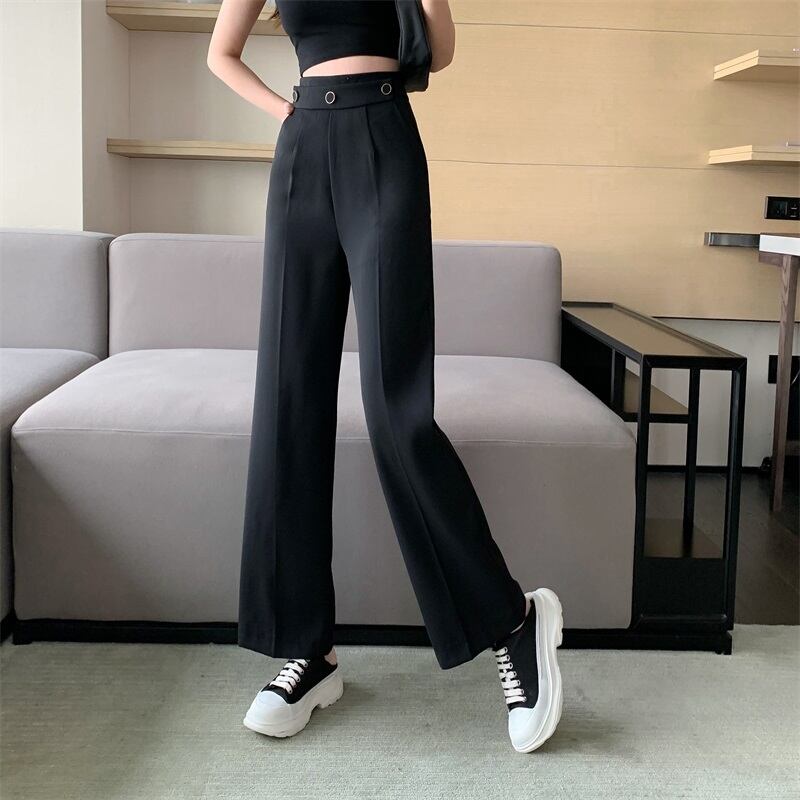 ハイウェストカジュアルパンツ サマー薄手ルーズ 夏物 ブラックストロベリース82834683549