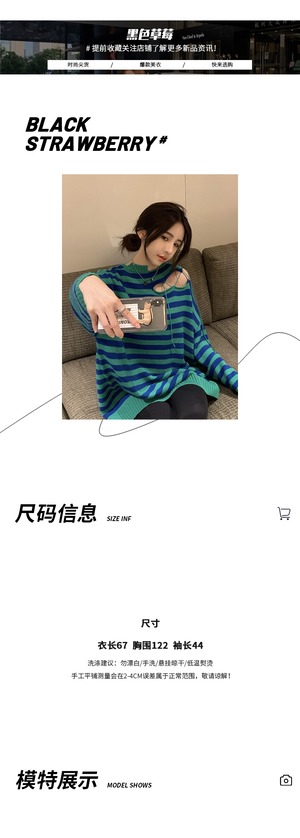 セーター スタイルストライプスプリングルーズトップス 春物 ブラックストロベリース32279506334