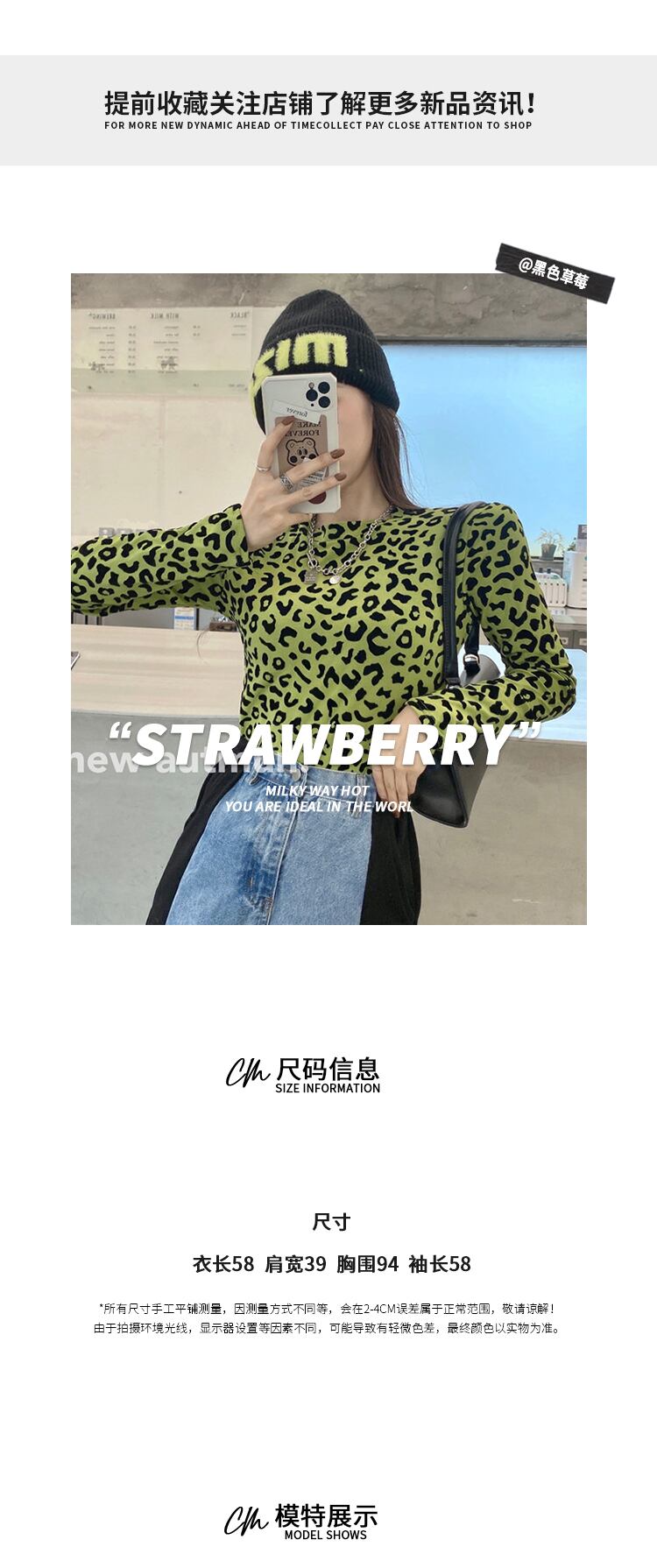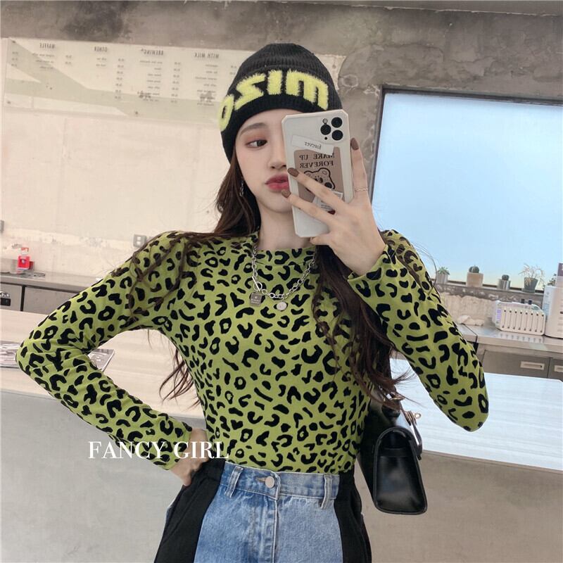 Tシャツ シャツ レオパードプリント柄スリムブラックスプリングトップス ロング 春物 ブラックストロベリース62441192271