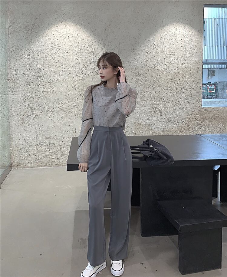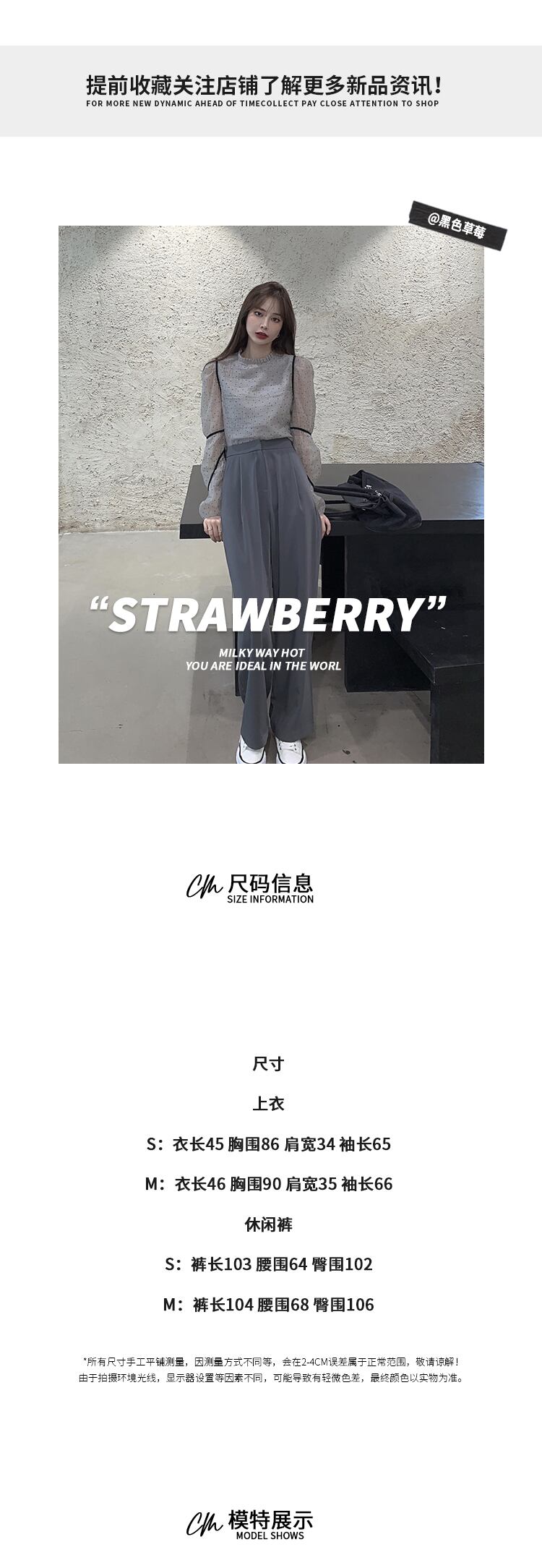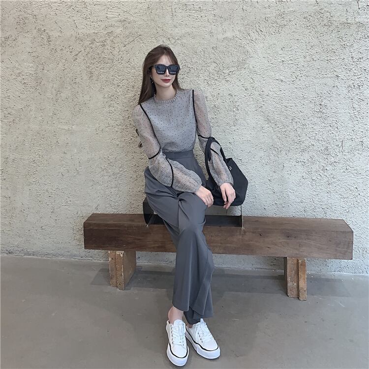 ショート水玉シャツ スプリングスリムトップス ロング 春物 ステッチ ブラックストロベリース3315440571
