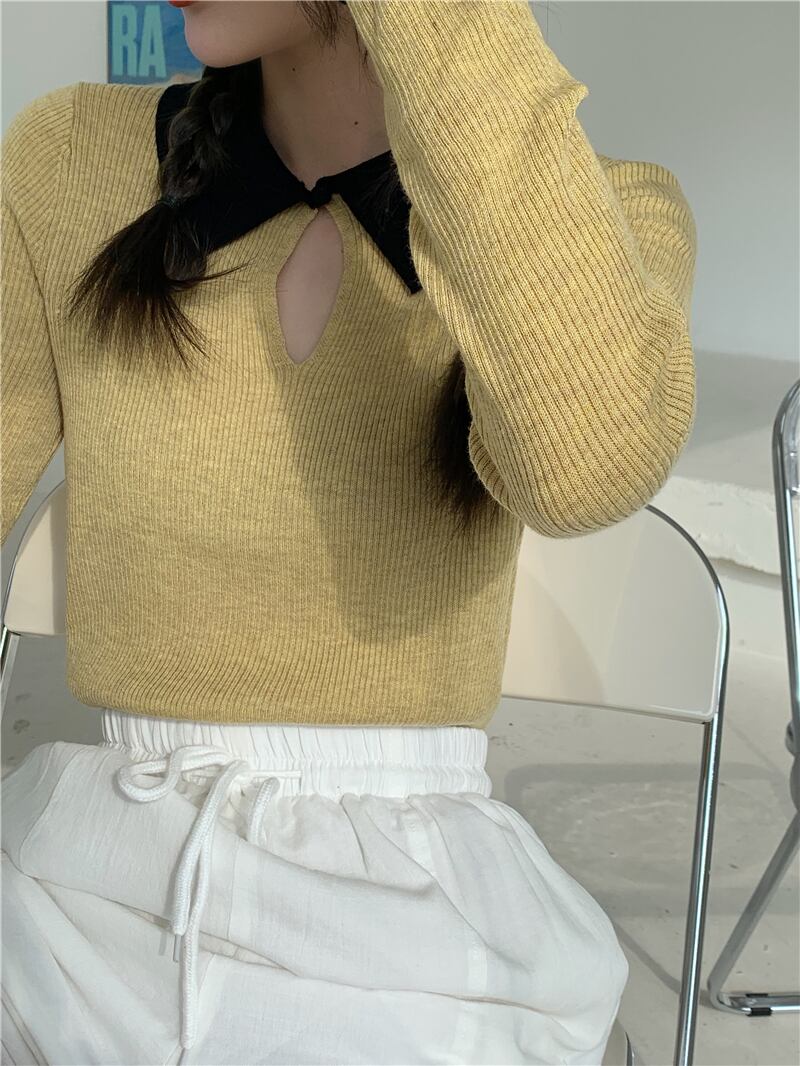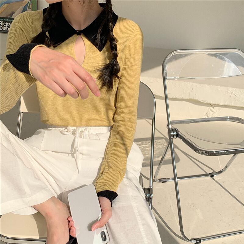 ニットセーター カラースリムシャツ スプリングトップス 春物 ブラックストロベリース36120080563