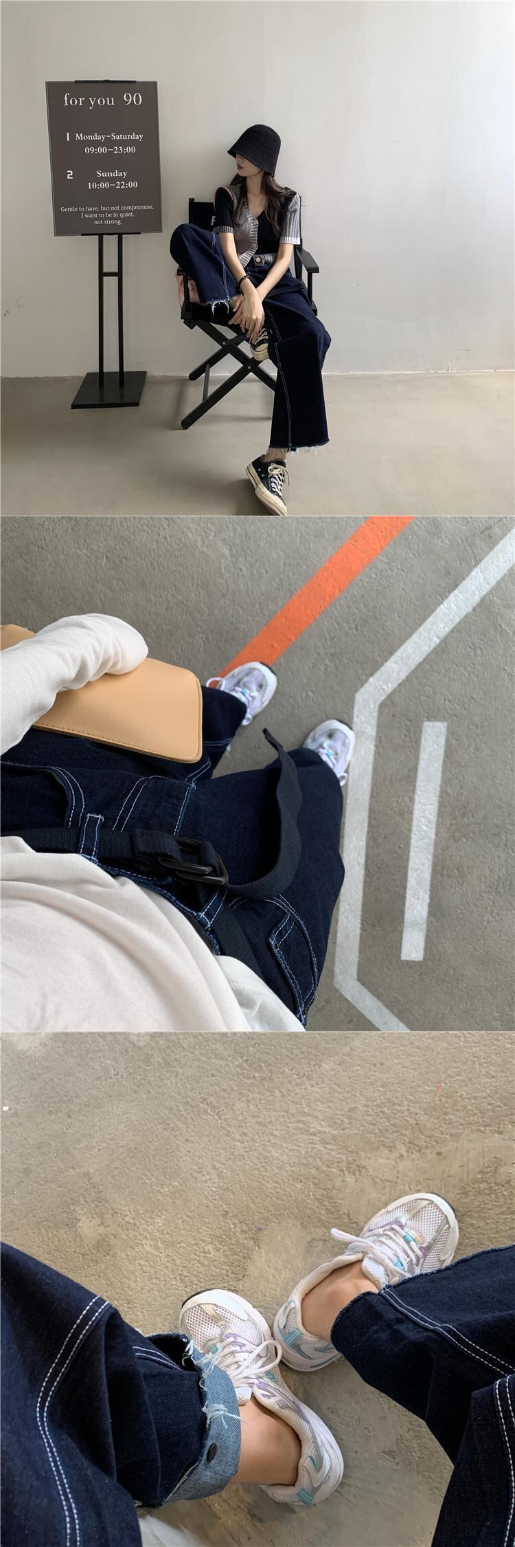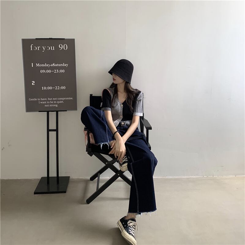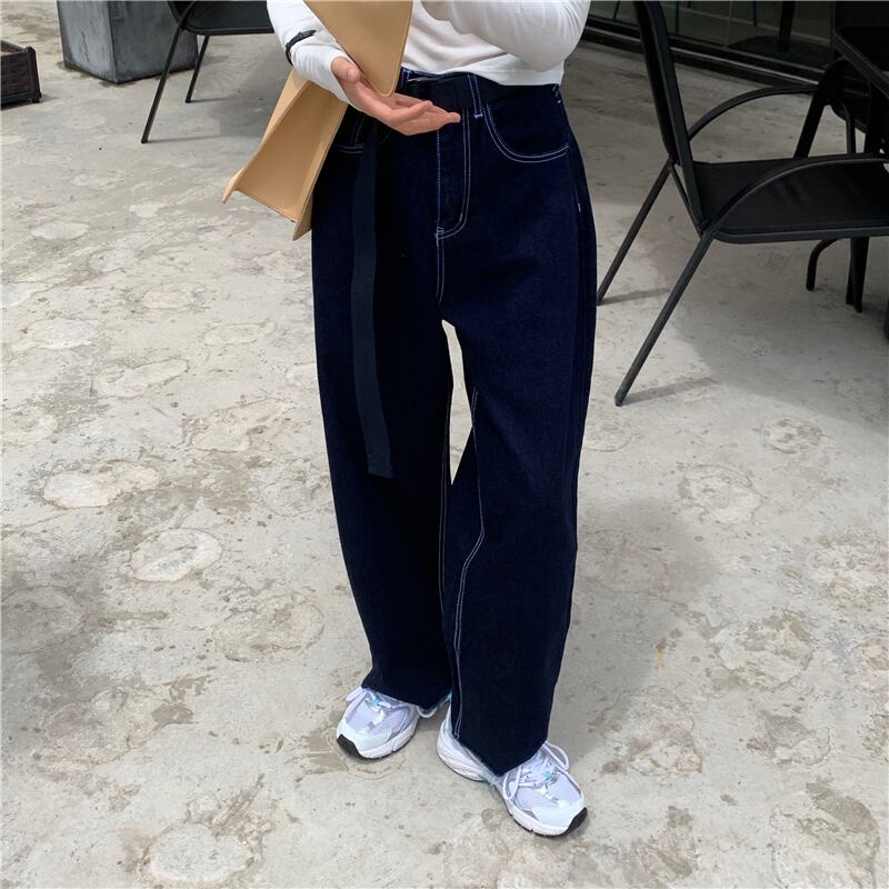 ジーンズ ルーズスプリングダークハイウェスト薄手パンツ 春物 ブラックストロベリース46603930978